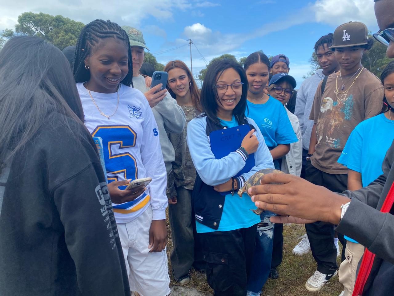 A highlight of the day was a walkabout at the Rondevlei Nature Reserve, where the learners had the opportunity to observe firsthand the diverse flora and fauna endemic to the region. Guided by knowledgeable educators, they engaged in birding, plant, and animal identification, gaining insights into the delicate balance of ecosystems and the importance of preserving biodiversity. These shared experience not only broadened their perspectives but also fostered a sense of unity in their collective pursuit of environmental stewardship. Later in the day, the walkabout transitioned into team-building style activities, further enhancing the exchange between the learners. Through collaborative challenges and problem-solving tasks, they strengthened their bonds and honed their communication and leadership skills.
